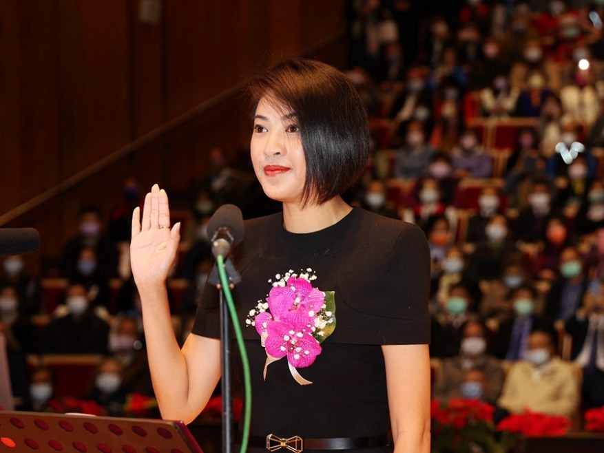 許淑華縣長致詞前,透露她的秘密說,「氣溫低,民眾問說會不會冷?」其實,她身上的短袖黑色套裝,一年前就買好了,早就為就職做準備!這句話展現她的自信,獲得滿堂掌聲。