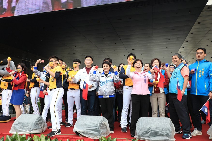 [新媒社 記者林大墩/台中報導] 台中市政府112年元旦升旗典禮,(1)日上午8時在市府前廣場盛大舉行,邀請勇奪職棒總冠軍二連霸中信兄弟隊一同領唱國歌,現場旗海飄揚,眾人熱情迎接新年到來。市長盧秀燕今日許下3個新年新希望,期盼台中市更繁榮富裕、市民平安健康、連霸幸福宜居城市,她也祝福新的一年國運昌榮、台中市政順利成功。