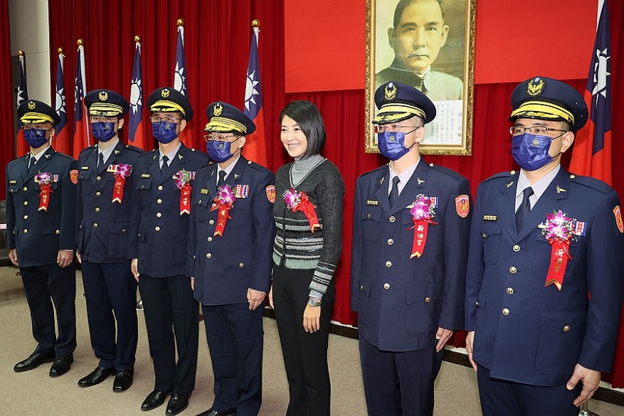 主持聯合交接典禮的許縣長先為5位晉陞的新任分局長授階,並逐一見證8個分局卸新任分局長交接印信,也擔任新任分局長宣誓就職的監誓人,許縣長也逐一介紹新任縣警局主任秘書、督察長及8位分局長的經歷。