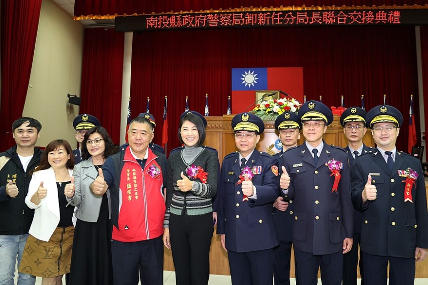 聯合交接典禮,縣議員宋懷琳、縣議會秘書長李孟珍、地方檢察署主任檢察官李俊毅、南投縣警友會理事長簡崇吉等貴賓都到場共襄盛舉,場面隆重,圓滿成功。