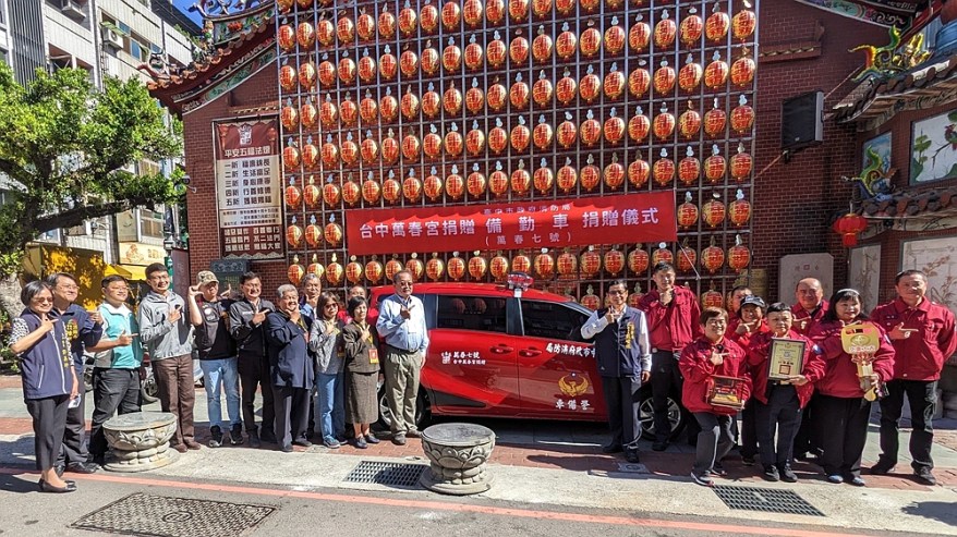 消防備勤車捐贈儀式今日於台中市萬春宮前廣場舉行。由代理主委常立文代表「台中萬春宮」捐贈,消防局副局長戴峻焜代表到場受贈,並回贈感謝狀以示感謝。消防局指出,台中萬春宮主祀神為藍興媽祖,具傳承藍廷珍創建「藍興宮」的意涵,距今來台已有三百年,以闡揚慈愛、悲憫、包容、關懷,寓勸於懲,力挽頹風而匡薄俗,進以發揚民族精神,以維中華文化免於墜地。救濟急難更是重要的使命之一,特別捐贈備勤車「萬春七號」來提升救災品質,讓救災人員更方便、更有效率幫助民眾,人民的生命也將更有保障。