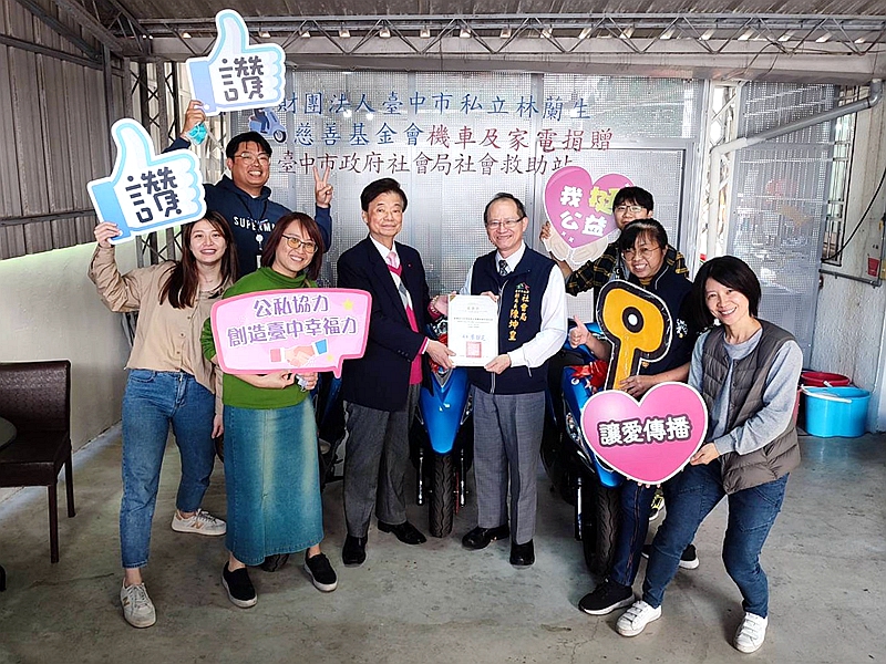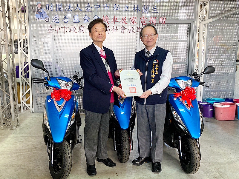 [新媒社 記者張銀澤/台中報導] 關懷街友、為社工行動力加碼!財團法人台中市私立林蘭生慈善基金會今(23)日捐贈中市府社會局3輛機車,及脫水機、掛壁式電風扇等家電用品;社會局副局長陳坤皇代為受贈並頒贈感謝狀,感謝基金會持續付出愛心與關懷,一同守護街頭上的無家者。