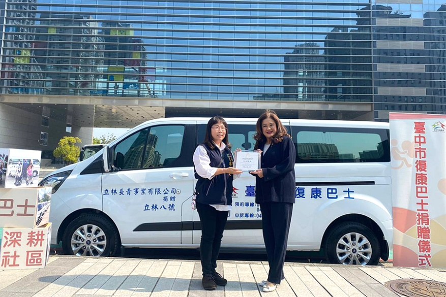 [新媒社 記者張銀澤/台中報導] 為讓偏鄉地區的身障朋友行得更便利,立林長青事業有限公司今(16)日再度捐贈台中市政府1輛小型復康巴士,指定在和平等偏遠地區使用,服務身心障礙和行動不便的居民。社會局長廖靜芝代表受贈表示,立林公司至今已捐贈市府8輛復康巴士,投入無障礙交通接送服務,熱心公益;這幾年也捐贈各項防疫物資,與市府共同防疫,守護市民健康。感謝民間企業關懷社會,行善不遺餘力。