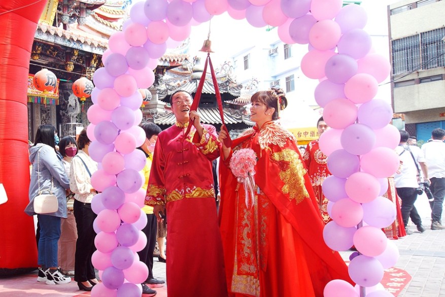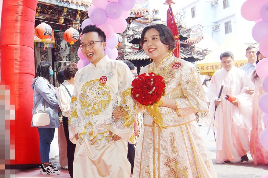 郭松益董事長說,今年有一對新人林郁婷小姐跟藤田圭祐先生交往五年的異國相戀愛情故事,林小姐和藤田先生是在日本的交友軟體認識,維持了兩年多的穩定的遠距離戀愛後,有打算結婚,在2020年2月返回台灣時,並與家人報告,因為疫情的關係,及因為算命的師傅說時機還未到,所以就暫停這個結婚計畫,時間又過了三年,原本打算以登記的方式完成結婚,但經由林郁婷的媽媽介紹,讓他們知道有這次聯合婚禮的活動,一方面能在樂成宮由月老及旱溪媽祖的見證下完成婚禮,對她們來說是相當寶貴的經驗,另一方面也能讓家人們看見自己穿上婚紗的模樣,也是非常難得的體驗,所以就決定要參與這次的活動。更增添這次活動異國婚姻的佳話。