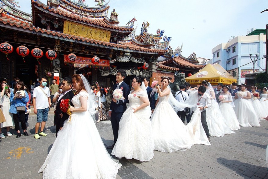 [新媒社 記者張銀澤/台中報導] 2023台中樂成宮第六屆集團結婚,神賜福氣 金石同心—樂見真愛 成就幸福 財團法人台中樂成宮與貝思特婚紗業者共同合辦,前五屆深獲參加佳偶好評。第六屆集團結婚,經請示旱溪媽祖,定於3月25日(六)辦理,今年有86對報名參加,今天實際報到的新人共76對,最年長65年次羅先生和67年次張小姐,最年輕88年次陳小姐和87年次張先生。