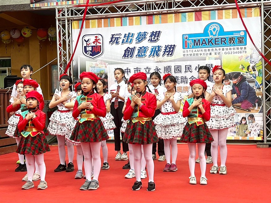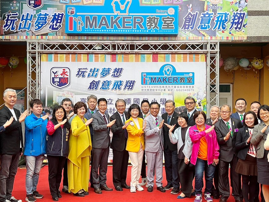 今日典禮由永順國小熱舞社開場,接著傳統技藝舞龍隊磅礡登場,氣氛熱鬧歡欣。教育局表示,感謝熱心公益、關心教育的國際扶輪社,透過這個全球獎助計畫,為永順國小建置iMaker木工教室,打造更優質安全的創作環境,讓永順的孩子發展創意,享受動手做的樂趣。