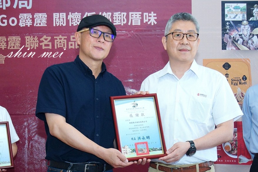 [新媒社 記者張銀澤/台中報導] 中華郵政公司長期投入公益關懷,落實企業社會責任,本次更結合臺灣在地特色文創,與霹靂國際多媒體股份有限公司及興霖食品股份有限公司攜手合作,於112年5月10日舉辦「i郵文創Go霹靂 關懷偏鄉郵厝味」公益記者會活動,推出限定款「厝味X霹靂」聯名綜合乾拌麵與蛋捲禮盒商品,並於中華郵政i郵購通路獨家販售,每盒加贈具文創特色的霹靂布袋戲名片型個人化郵票1枚,有素還真、談無慾、一頁書、葉小釵、月無缺等12款不同霹靂布袋戲角色組合文創個人化郵票,值得收藏。活動並為臺中梨山偏鄉地區國中小學的弱勢家庭學童及獨居長者進行愛心募集,鼓勵民眾以實際行動將溫暖傳遞出去。