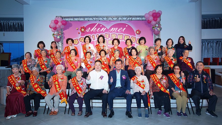 草屯鎮95歲高齡的新厝里模範母親張李秀絹由里長簡宏校陪同受訪,耳聰目明的張李女士談到獲獎心聲說,只希望全家大大小小都平安就好了,也談到當媽媽的甘苦說,她就是喜歡隨時和家人開開小玩笑,再大的事情就都能圓滿解決了,愛拍照的張李秀娟和簡里長合影時還比出俏皮的耶(Y)手勢,歡喜心情全寫在臉上。