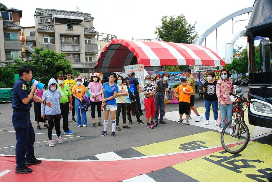 [新媒社 記者張銀澤/台中報導] 台中市東區東信里長洪榮吉、長幼關懷協會總幹事洪志宏,關心用路人被捲入大型車輛輪下的交通事故時有所聞,為了有效宣導「內輪差」與「視野死角」危險性,台中市監理所、台中第三分局交通隊112年7月20日上午10時將大客車開進旱溪夜市廣場,讓東信里民登上駕駛座體驗,從大車駕駛高度觀察車外道路環境了解大型車「視野死角與內輪差」的危險性,希望藉由宣導活動,讓民眾加強對交通法規的認知,減少交通事故的發生。