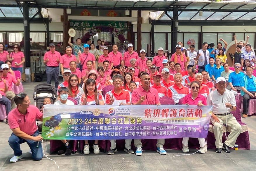 而長期陪伴埔里鯉魚潭的台中市北屯扶輪社,投入社會資源與生態關心的角度,於今日在天水蓮大飯店水上餐廳舉辦聯合社福活動「紫斑蝶復育活動」,更有來自台北、桃園台中等地區的扶輪社友響應本次活動,一起推廣環境教育、營造蝴蝶棲地,意義非凡,和我們一起讓蝴蝶在園區內自在的飛翔,至今埔里鯉魚潭16000顆以上的蜜源植物,期待山城裡蝴蝶翩翩飛舞的畫面。