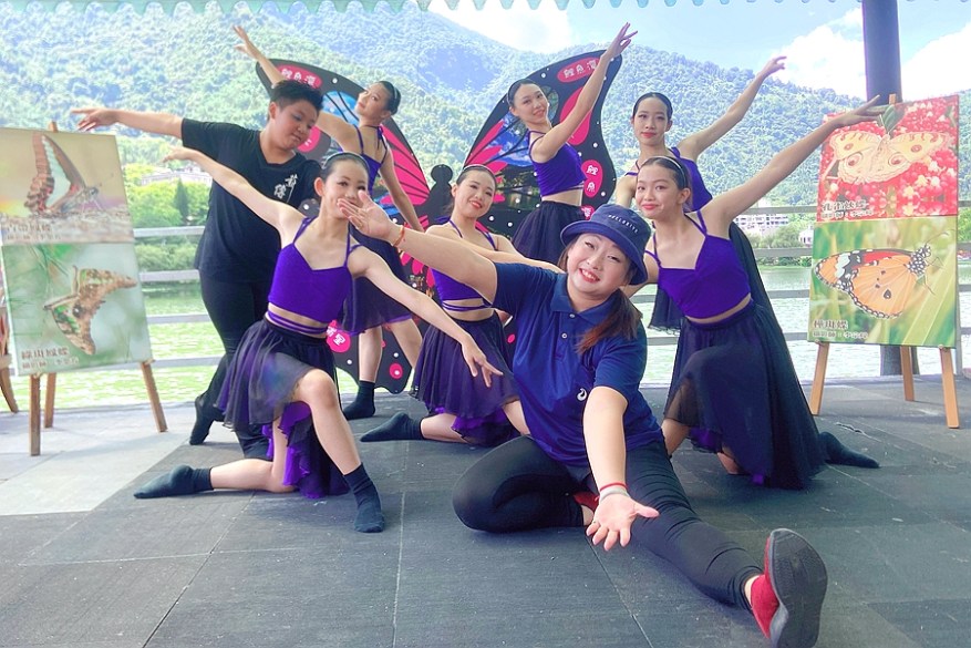 今日蝴蝶復育活動特別邀請薪傳舞蹈團,特別編舞蝴蝶舞蹈將蝴蝶姿態以具象的方式呈現給大家,期望打造一個生態與自然為主的風景區。期盼埔里鯉魚潭帶頭一起將社會責任落實在生活與園區內,讓更多人走進鯉魚潭,一同為復育蝴蝶與自然進一份心力。