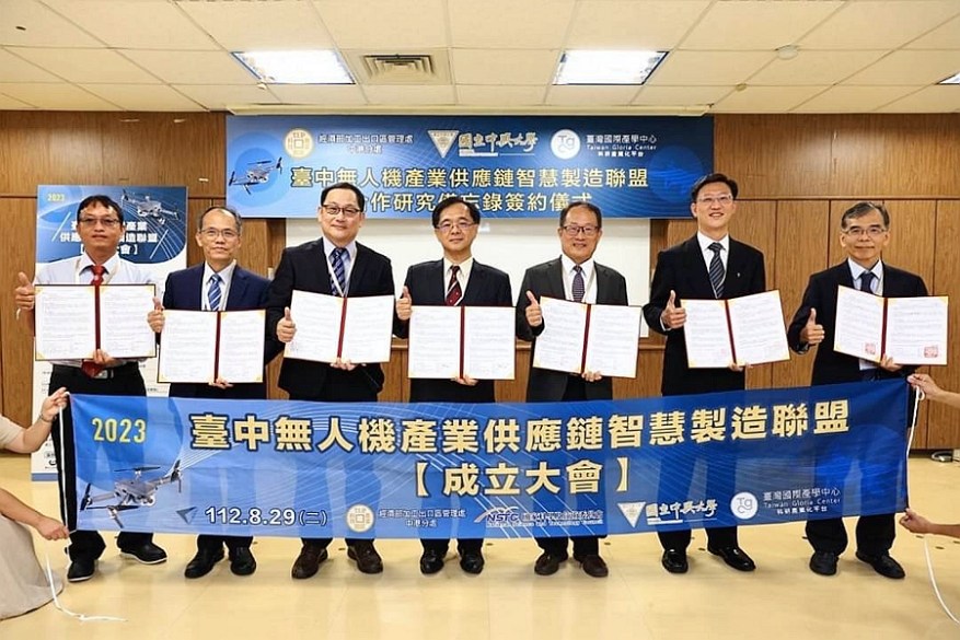 [新媒社 記者張銀澤/台中報導] 為促進中部地區無人機產業發展,提升區內外供應鏈廠商國際競爭力,經濟部加工出口區管理處中港分處與國立中興大學產業鏈結中心及國防關鍵系統研究發展中心聯手推動「臺中無人機產業供應鏈智慧製造聯盟」,聯盟簽約儀式於今(29)日舉辦,由中港分處及中興大學偕同39家區內外會員廠商代表共同簽署,期打造完整的供應鏈組成產業聚落,致力推動無人機產業升級。