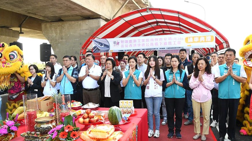 [新媒社 記者張銀澤/彰化報導] 彰濱鹿港工業區車流集中至鹿工路問題,並強化福興交流道服務範圍完整性,彰化縣政府積極向中央爭取補助經費,推動並完成闢建鹿安橋(彰30)銜接西濱快速公路橋下道路。今(1)日上午舉行通車典禮,彰化縣長王惠美、交通部公路局中區養護工程分局長謝俊雄等人與會。王縣長表示,彰濱工業區是全台最大的工業區,每天的交通流量非常大,自鹿安橋完工後,苦無直接接到台61線,通常需繞12分鐘的路程,在中央及地方齊心協力下,總工程經費1億1,777萬元完成闢建鹿安橋(彰30)銜接西濱快速公路橋下道路(中央補助約7,128萬元、縣府配合款約4,649萬元),完工通車後,讓用路人減少12分鐘的等待,不論是對地方發展、節能減碳都有非常大的幫助,也能創造更大的商機。