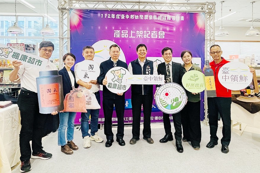 農業局表示,台中市有11個休閒農業區,區內有許多優質業者與農特產品,今年特別與楓康超市結合,將區內的優質農特產品上架超市通路,增加業者產品的知名度並提高農村收益,此次精挑細選出多項產品,包含軟埤坑休閒農業區好樂農莊的國產藍莓爆米花、抽藤坑休閒農業區淘氣小農的機採清香烏龍與方便烏龍(紅)茶包、梨之鄉休閒農業區美東製醬的陳年黑(黃)豆醬油等產品。