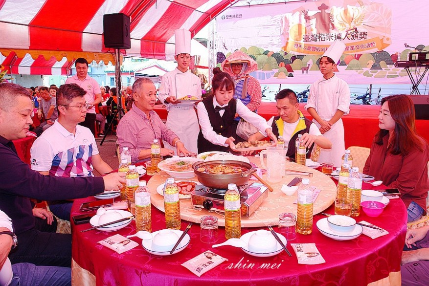 [新媒社 記者張銀澤/南投報導] 南投縣草屯鎮是盛產稻米之鄉,鎮農會9日舉辦「112年臺灣稻米達人冠軍賽鄉鎮賽頒獎典禮暨慶豐年千人割稻飯產業文化活動」,在農會廣場席開104桌,邀請地方人一同來回憶昔日割稻飯的農村溫馨情。