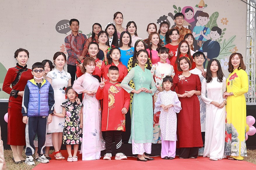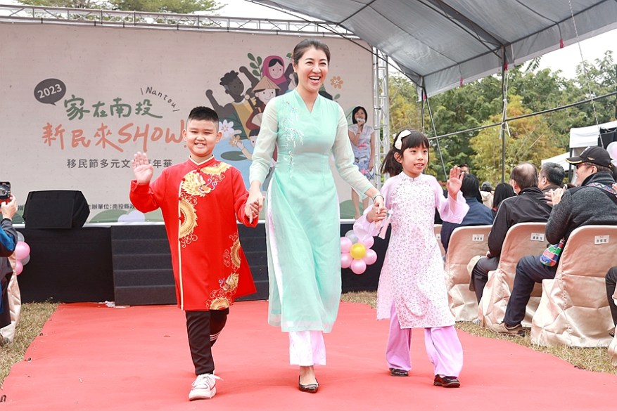 許縣長也穿著一襲亮麗的越南傳統服飾-奧黛與新住民大方走上伸展台,展現異國風情,也呈現南投文化共融新氣象。許縣長表示,將持續優化新住民輔導及服務措施,照顧新住民,打造宜居幸福的第二故鄉,縣府也會做新住民的靠山。