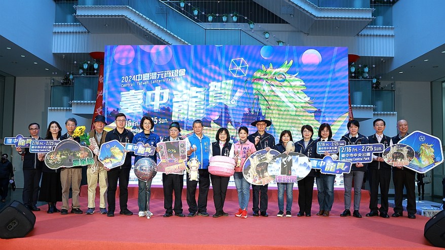 陳局長表示,中台灣元宵燈會是全國場域最大的地方型燈會,今年以「台中龍賀!」為主題,巧妙運用台語諧音「樣樣好」,傳達台中是樣樣好的宜居幸福城市。市府團隊將燈組設計結合中央公園場域特色及周邊城市景觀,利用滯洪池特色,整條水域化身成令人驚嘆的水上主燈劇場,搭配巨龍睜眼、抬頭、舉身、吐息,結合發光立方體表演,宛如巨龍把玩著龍珠,氣勢磅礡,絕對是龍年新春必拍打卡點,誠摯邀請全台民眾來台中體驗絢麗多變的劇場饗宴。