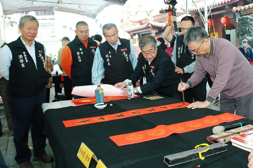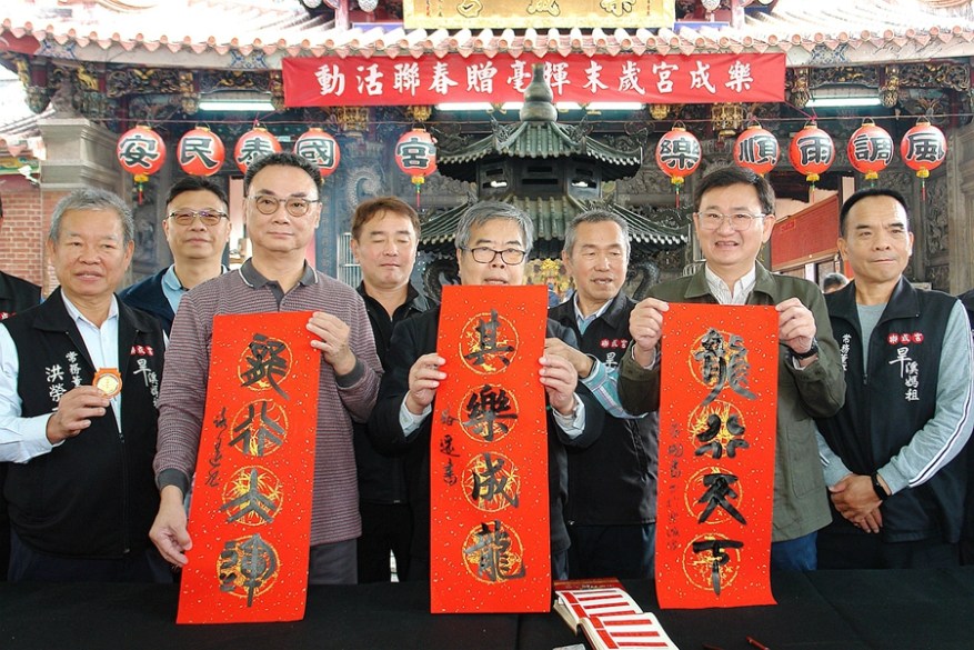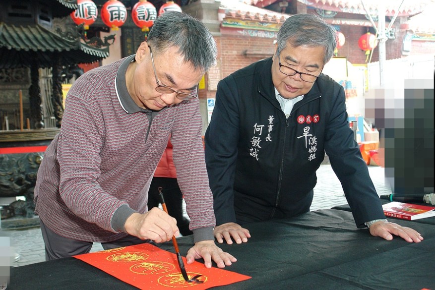 樂成宮董事長何敏誠表示,樂成宮現場揮毫贈送春聯活動已連續辦理多年並獲信眾喜愛,傳統文化習俗於春節期間,以吉利、吉祥、喜慶之賀年春聯貼於家門,象徵除舊布新、萬象更新。