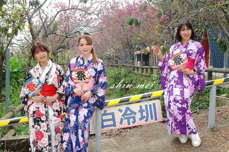 新社櫻花林陳董說當您選擇在美好的春天造訪新社.若沒走進櫻花鳥森林.別說您已經看過最美的白冷圳,在最美麗的季節留下最美麗的身影!除了票選第一名的香水櫻瀑布.您也不要錯過第二名的香水櫻花海.座落在賞櫻十字步道.這裡是著浴衣拍美照的首選之處.賞櫻步道以連鎖磚舖設而成.女生穿高跟鞋也怡然自得。