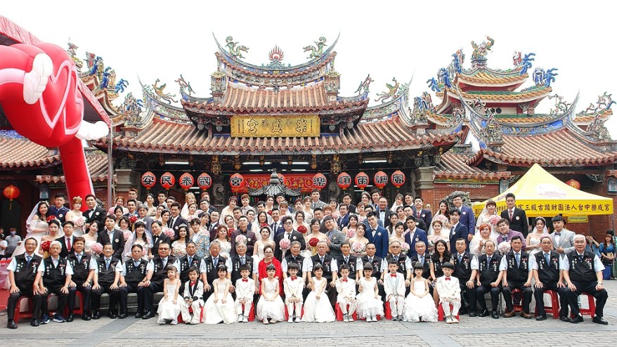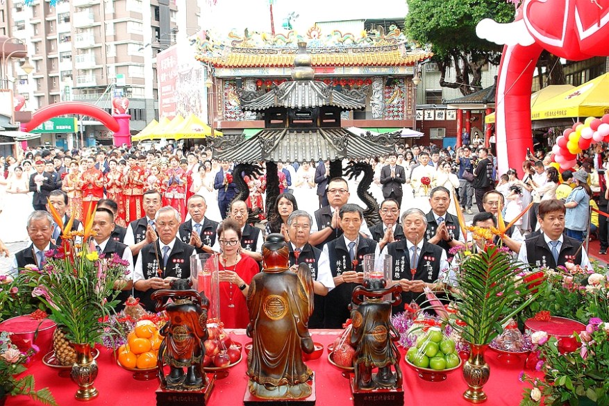 集團結婚已漸漸取代傳統婚禮,由婚紗公司統籌辦理新人無須張羅一切,輕鬆迎接人生一大盛事,是許多年輕人結婚的第一選擇。樂成宮亦稱為旱溪媽祖廟香火鼎盛,1753年初設至今為國家三級古蹟,許多單身朋友為了求得好姻緣,情侶為能延續姻緣,祈求月老星君見證與賜福,而樂成宮為首要選擇眾所皆知,每年的未婚聯誼活動更見證了千里姻緣一線牽!!由媽祖為信眾證婚賜福,見證得來不易的緣分能修成正果,庇佑新人婚姻幸福美滿,成就佳話。
