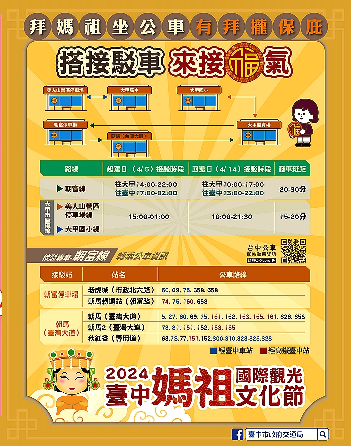 2024大甲媽祖遶境 4/5、4/14免費接駁車 !
