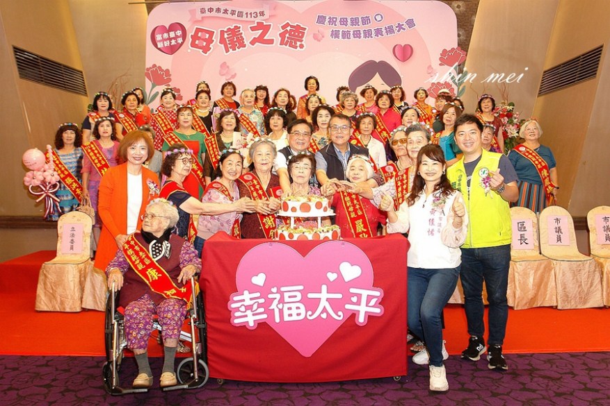 今年模範母親表揚活動,共推薦46位模範母親接受表揚。太平區公所設宴用豐盛的餐會與模範母親們餐敘歡慶,安排歡唱高歌,度過一個難忘的母親節,並預祝所有媽媽們「母親節快樂」、家庭幸福美滿。