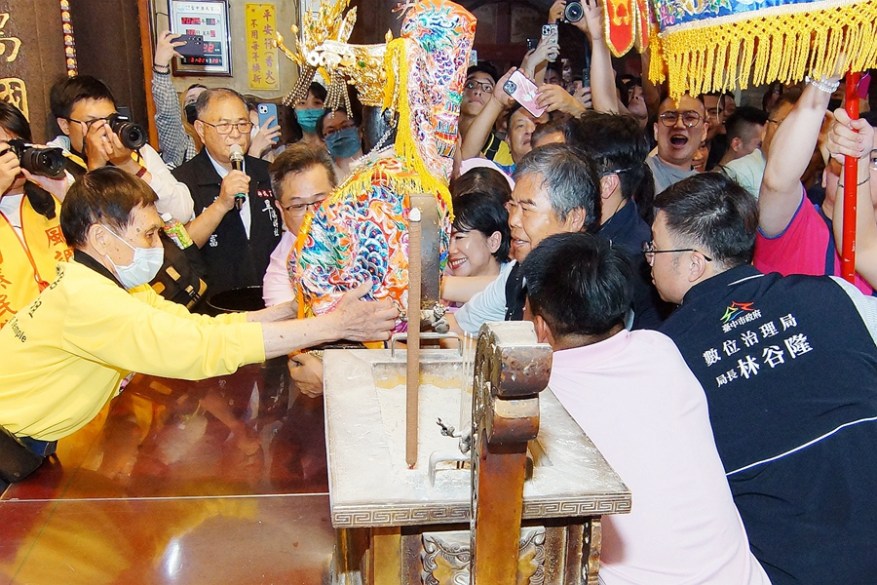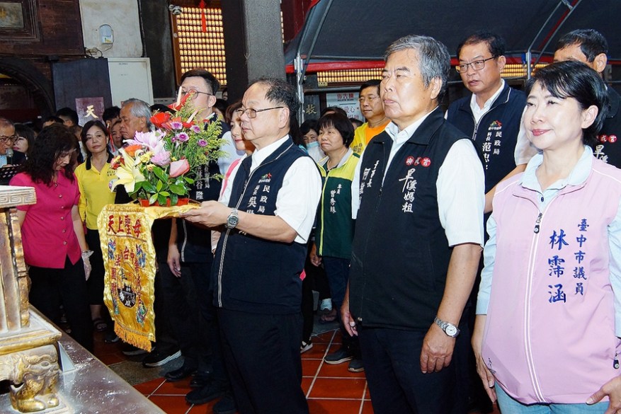[新媒社 記者張銀澤/台中報導] 113年台中樂成宮旱溪媽祖遶境十八庄,為期22天,行經11區、116里為地方祈福,沿途受到信眾熱烈歡迎,氣氛熱絡,媽祖鑾轎4月30日晚在號角隊、鑼鼓陣護衛下回鑾安座,遶境圓滿順利。市府民政局局長吳世瑋代表市長盧秀燕恭迎媽祖回鑾,並祈求媽祖保佑台灣國泰民安、風調雨順。