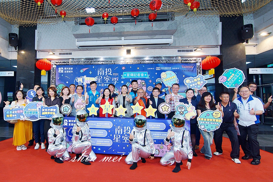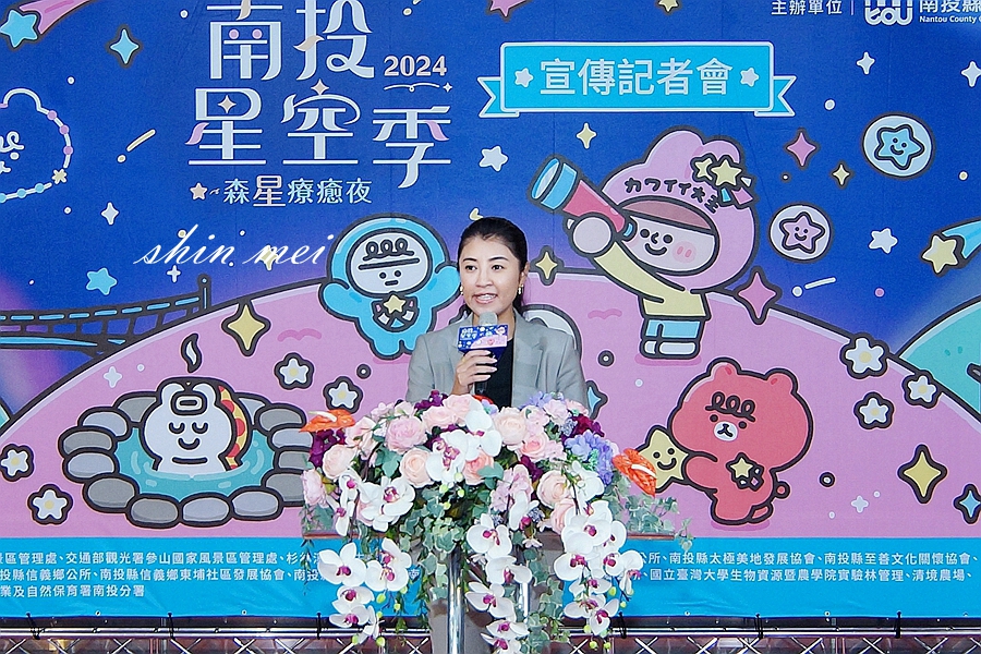 [新媒社 記者張銀澤/南投報導] 南投縣府22日於縣府一樓大廳舉辦「2024南投星空季」宣傳記者會,今年度以「森星療癒夜」為主題,結合在地特色產業與文化,以及天文科普和觀星導覽推出各項體驗類型活動,縣長許淑華與活動吉祥物weiweiboy可愛大王一同現身,宣布南投縣暗空旅遊系列活動5/25正式展開,歡迎全國遊客來南投觀星聽音樂。