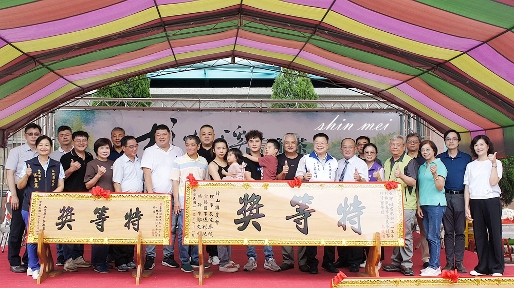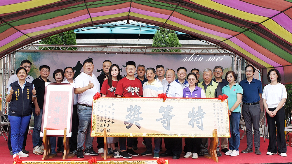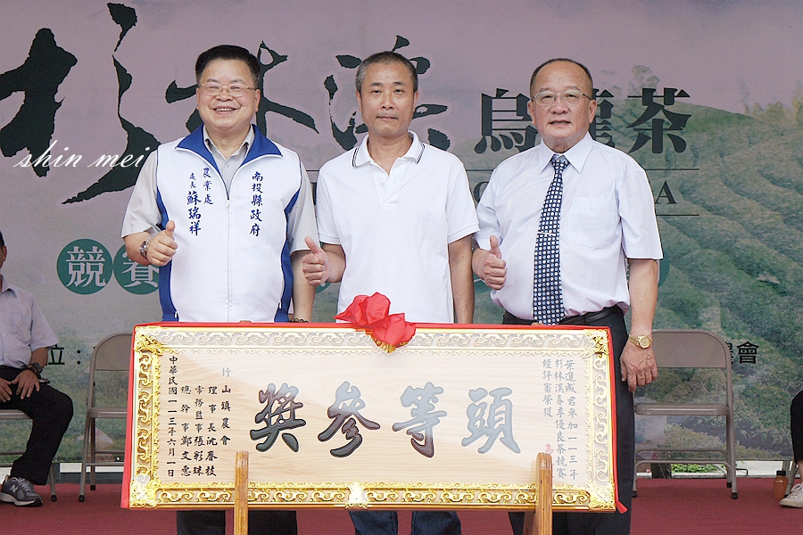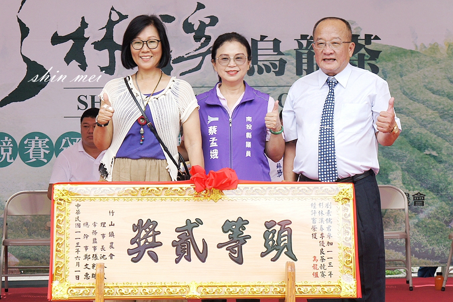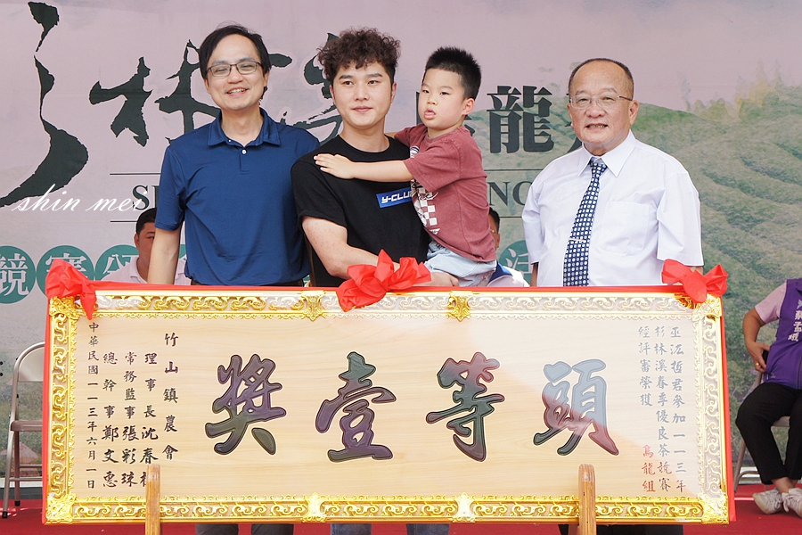 [新媒社 記者張銀澤/南投報導] 南投縣竹山鎮農會杉林溪春茶競賽頒獎典禮及農特產品展售促銷活動,今1日上午由理事長沈春枝主持,許淑華縣長及縣府農業處長蘇瑞詳、立委游顥、縣議員蔡孟娥、縣農會總幹事曾明瑞、農業部茶及飲料作物改良場研究員兼分場長黃正宗列席致意,並分別頒匾給新品種組特等獎張綸哲、烏龍組特等獎巫宥漩並合影留念,儀式簡單隆重。