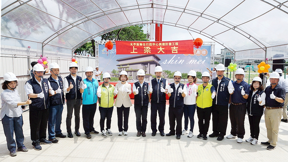 [新媒社 記者張銀澤/台中報導] 台中市長盧秀燕上任以來積極推動地方公共建設,並首重工程品質,太平區為中市第4大行政區,為提供民眾便利及舒適的洽公環境,由建設局、民政局、交通局及社會局合作推動「太平區聯合行政中心」,興建工程已於去年1月7日開工。今(19)日由副市長黃國榮代表盧市長主持上梁祈福典禮,勉勵建設團隊朝明年8月如期如質完工邁進,全力打造太平意象新地標,兼顧工程品質及景觀美學,也提供民眾更友善便利的服務。