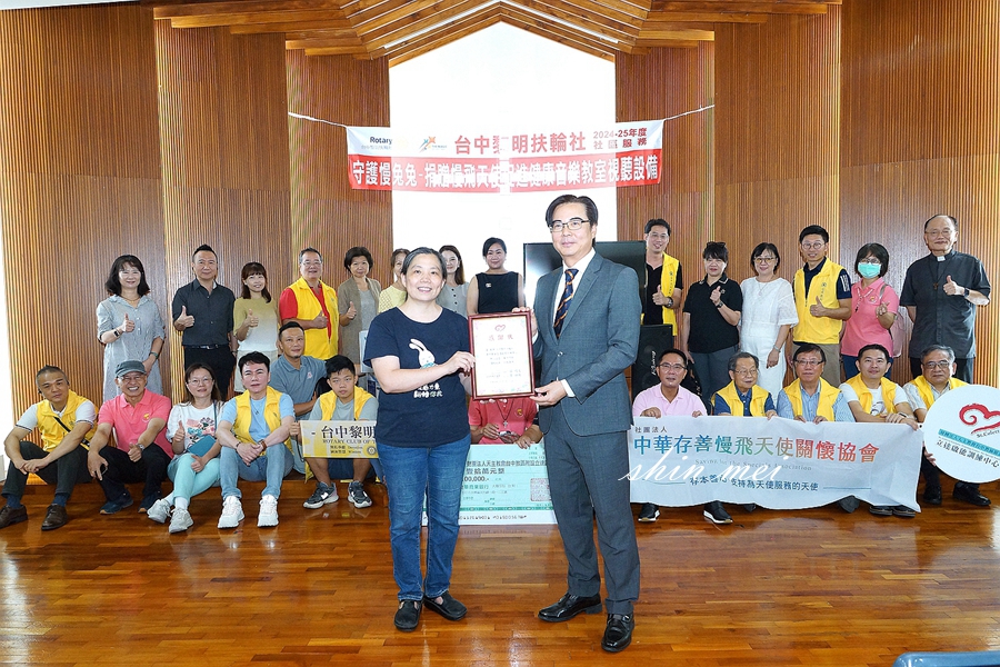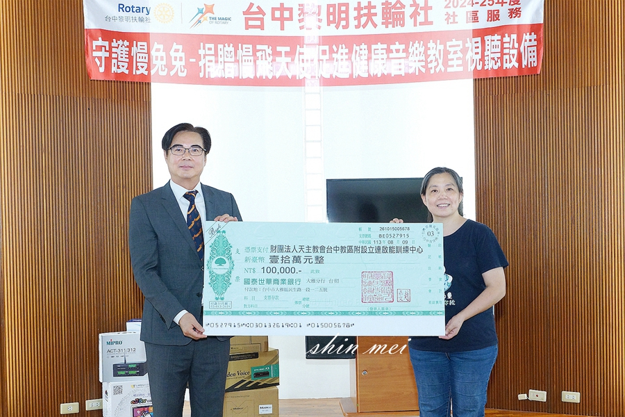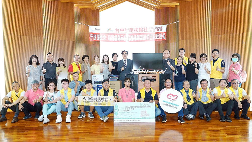 黎明扶輪社今日成功舉辦捐贈活動,為立達啟能訓練中心捐贈了一批教學視聽設備及廣播設備、卡拉OK…,總計金額約十八萬元整。此次活動在立達啟能訓練中心舉行,並邀請了天主教會台中教區蘇耀文主教、國際扶輪前總監楊世裕、中華存善慢飛天使關懷協會理事長吳錦河、天主教中部八家啟智中心執行長蔡惠玲及諸多貴賓社友等出席,共同見證這一重要時刻。