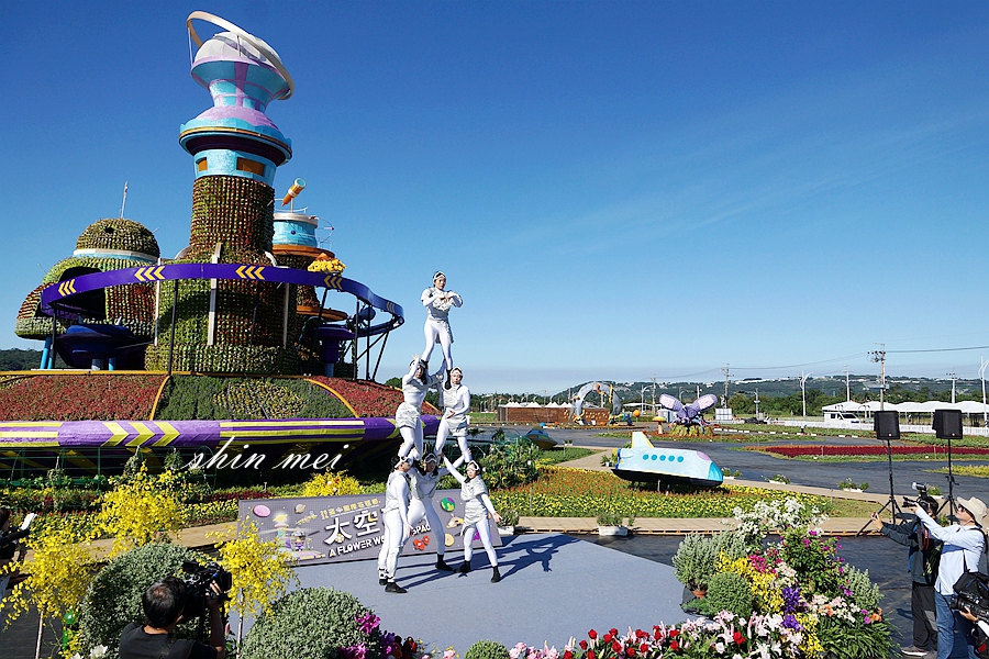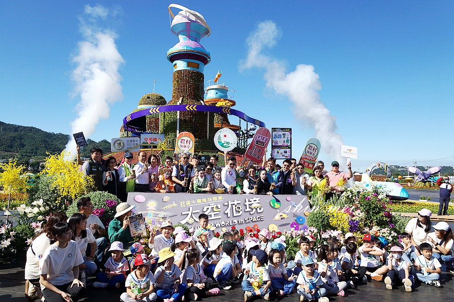 觀旅局說今年首度以新社香菇太空包的永續循環再利用為主題推出「太空花境」,將SDGs15「保育及永續利用陸域生態系」導入策展核心,結合環保與教育議題,帶領遊客穿越時空來到全新的未知太空世界,進而關心環境與循環經濟的永續議題。今年主花毯「太空花城」規模更大、更壯觀,還挑戰「高度最高、直徑最大、草花最多、動態最多」等4項紀錄,高達17公尺、直徑55公尺的神秘太空花城降落在新社花城並進行機械動態秀,還包括「時光隧道」、「環環相扣」、「共創基地」、「草莓火箭」、「探索未來」及「蟲獲新生」創意裝置,歡迎民眾探索、拍照打卡!