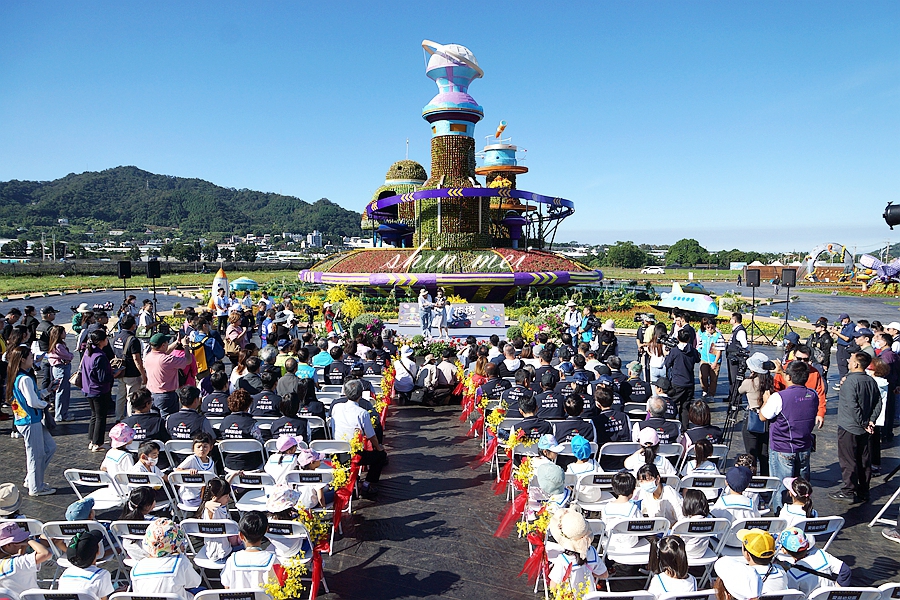 [新媒社 記者張銀澤/台中報導] 2024新社花海暨台中國際花毯節於11月9日至12月1日在新社區種苗改良繁殖場二苗圃展區登場,為期23天,運用20萬株草花、23種花卉,打造2公頃的「太空花境」展區。今年主花毯「太空花城」挑戰「高度最高、直徑最大、草花最多、動態最多」等4項紀錄。