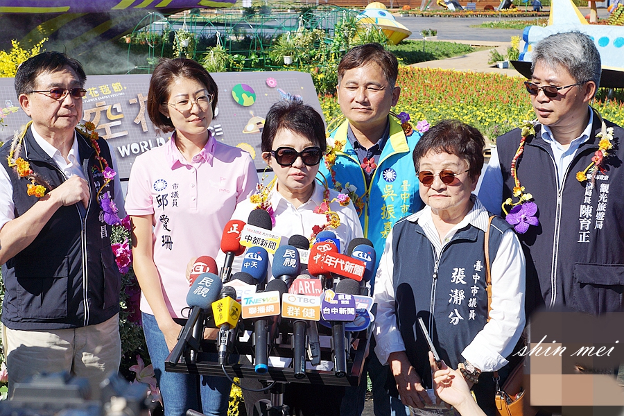 市長盧秀燕表示,台中國際花毯節是國內規模最龐大的花卉展覽,在有台灣普羅旺斯之稱的新社舉辦,去年活動湧入312萬人次,今年主花毯區再突破紀錄,展出17公尺高,直徑55公尺的太空花城,歡迎大家本週六到台中參加。