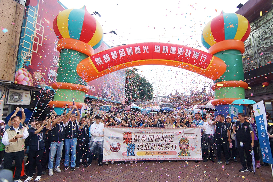 樂成宮董事長何敏誠表示,樂成宮正殿重修100週年及文物館揭牌系列活動,「樂齡夢回舊時光、澄就健康快樂行」今天和澄清醫院健走揭開首波震撼人心的健走活動,分休閒組和勇腳組揭開序幕,現場還有摸彩活動