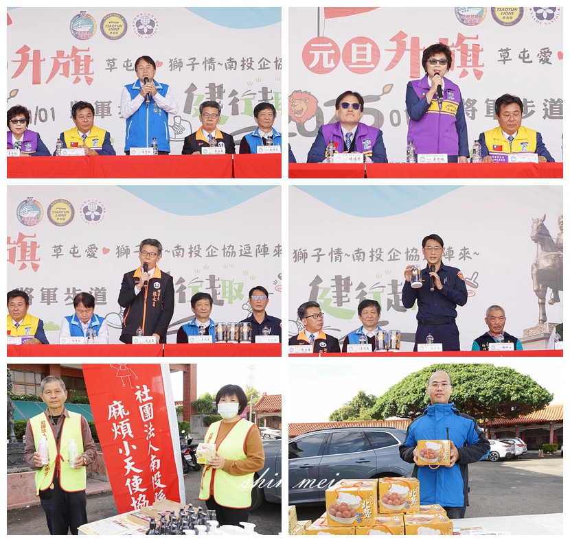 [新媒社 記者張銀澤/南投報導] 2025『元旦升旗~草屯愛~獅子情~南投企協逗陣來~將軍步道健行趣』。為迎接中華民國114年到來,草屯鎮公所與草屯獅子會/台灣獅草屯會、草屯分局防詐騙宣導、南投縣中小企業協會及台灣獅中興會、玉蘭獅子會/台灣獅玉蘭會、台灣獅投美會、南埔陳府將軍廟、人乘寺南埔精舍於114年1月1日共同舉辦元旦升旗親子健走活動,感謝台在草屯陳府將軍廟文教活動中心廣場,數千位民眾熱情參與一起唱國歌、升旗,祝福大家114年新年快樂,幸福快樂每一天,場面溫馨且動人。
