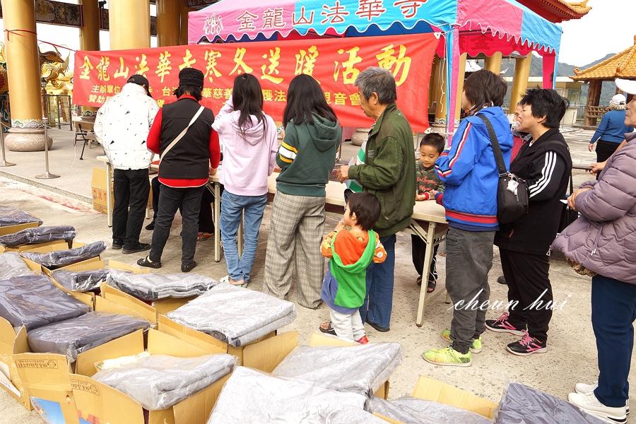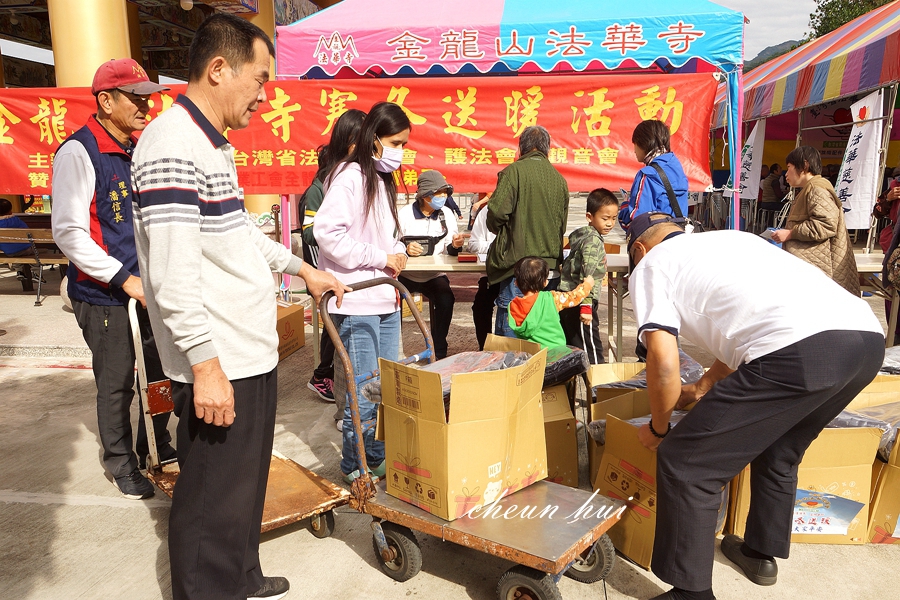 金龍山法華寺 主持蔡坤茂說「法華寺」和「台灣省法華慈善會」,推動熱心公益,關懷弱勢族群,辦理歲末寒冬送暖活動已屆數十年,號召慈善會會員一起出錢出力,關懷中寮鄉民眾計25貧戶,除生活物資品白米2包外,亦發放補助金每人2,000元,讓這些受惠家庭可以感受到溫暖。也期盼藉由民間單位之善舉,拋磚引玉,吸引更多善心團體關注弱勢族群,讓弱勢家庭感受到溫暖、社會更有愛。