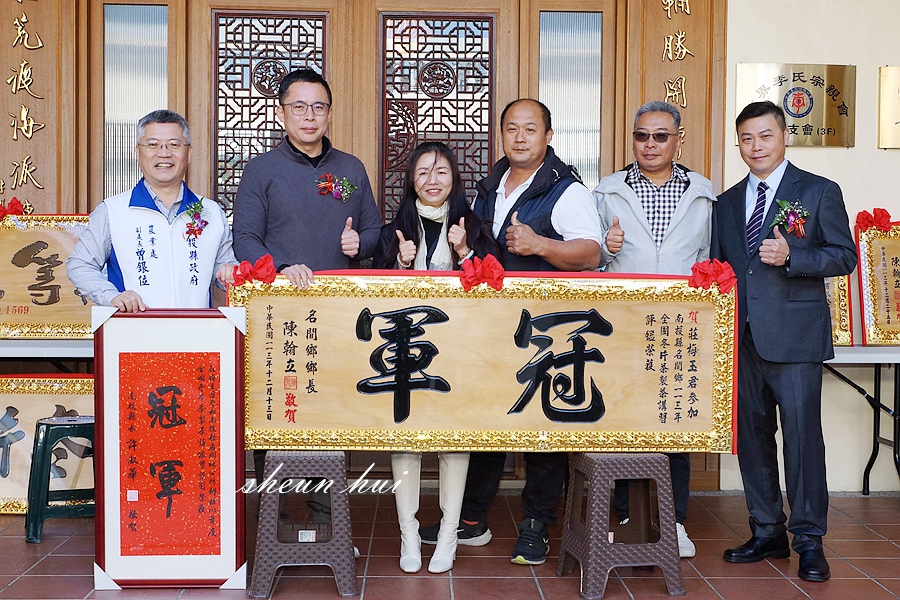 南投縣茶商公會理事長陳嘉銘主持,縣府農業處副處長曾銀位、縣商業會理事長廖俊哲、鄉長陳翰立、縣議員林儒暘助理吳明政等出席也分別頒發賀匾給,凍頂烏龍茶組特等茶王等幾位得獎者。陳嘉銘理事長表示,113年冬季暨全國冬片茶比賽茶、經評選後結果巳揭曉,這次比賽茶參賽件數為1000件、凍頂烏龍茶組677件、凍頂金萱茶組47件、凍頂翠玉茶組74件、凍頂四季春茶組45件、全國冬片茶組177件,分別由品香業股份有限公司、裕富茶行、謝棨安、九樂堂企業社李泇廣先生等榮獲凍頂各組特等茶王。另外,全國冬片茶王則由陳政士先生獲得殊榮。