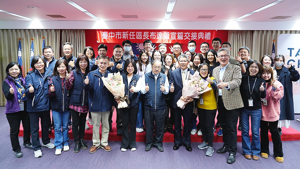 今日布達典禮,民政局長吳世瑋、經發局長張峯源、農業局專委黃春滿,以及經發局、農業局、北屯、西屯、太平區公所同仁約上百位來賓到場觀禮祝賀,立委廖偉翔、市議員黃馨慧、賴義鍠也派代表出席見證。
