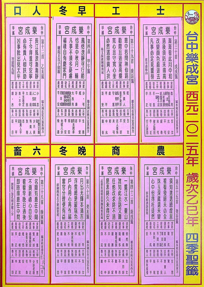 114年台中「樂成宮」乙巳年 四季聖籤 !