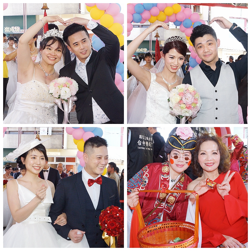 樂成宮第八屆集團結婚今天在民政局吳世瑋局長代表盧秀燕市長和科長范中賢﹐立委何欣純、楊瓊瓔﹐議員李中﹐東區公所吳忠聖區長、清水區無極鎮安宮王主委、台中郵局黃建銘發放(月老星君紀念郵票)每對新人各一組、東區戶政曾惠民主任及各級民意代表主任、助理、蒞臨指導,樂成宮董事長何敏誠帶領全體董監事參與,旱溪媽祖守護您幸福到老。