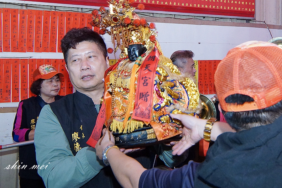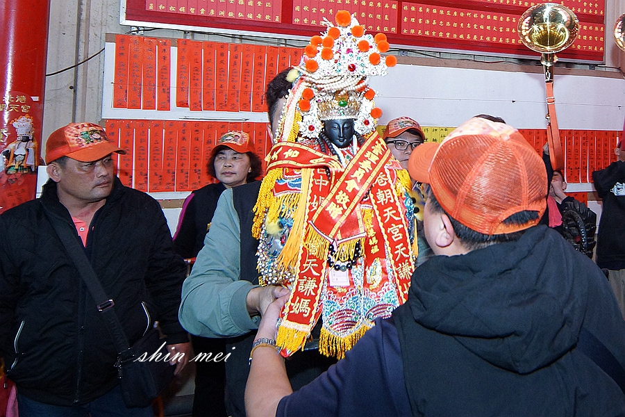 媽祖鑾轎進入廟門,回宮吉時一到,熱情的信眾虔誠膜拜、燃放鞭炮,信眾虔誠迎接,廟內擠滿信眾恭迎媽祖回鑾,進入宮內安座,信徒紛紛鼓掌歡呼,媽祖安座完成,信眾團拜秉疏文,祈安植福進香活動圓滿。
