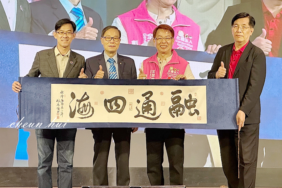 康熙健康事業股份有限公司總經理林品陞,也是中華霧峰林家宮保第國藝術中心總會榮譽理事長表示,他很榮幸能夠受到全球商聯會總會長廖巳驊的邀請,來參加全球商聯會的春酒宴,林品陞特別準備了一幅墨寶「融通四海」,送給廖巳驊總會長,也希望全球商聯會會務日漸昌隆,能夠做更多公益的活動,讓世間充滿溫暖,讓所有的會員們都有更好的發展機會,並祝大會圓滿成功。