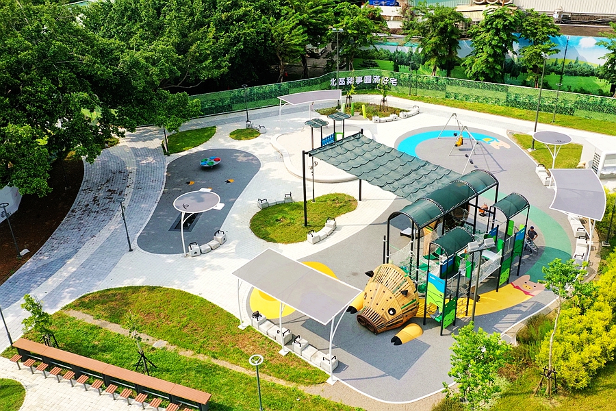 此外,「台中中央公園-飛行美樂地」以「未來飛行」為主題,結合水湳機場歷史,打造全國最長32公尺雙軌滑索、30公尺滑軌、飛行滑梯及無障礙遊具,營造四季皆宜的親子遊憩空間,廣受好評。「台中蜜糖公園-泉源下的糖業寶藏」則結合鄰近帝國製糖廠,保留糖廠遺構並融入解說設計,設有景觀水池、水霧裝置及無障礙步道,呈現糖業文化意象,成為東區兼具生態、文化與休憩功能的綠意新地標。