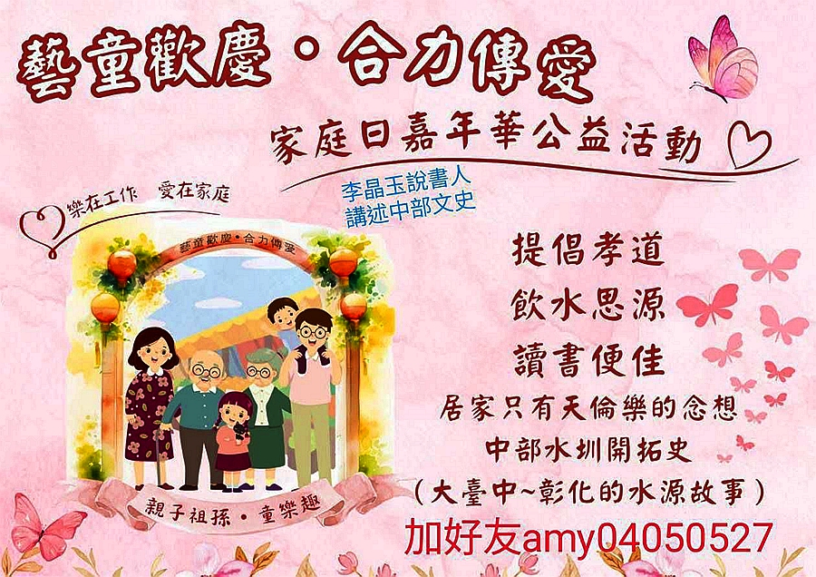 誠摯邀請您與家人攜手同行,一起細數這段美麗的時光,將溫暖與感動深藏心底。 活動發起人兼總企劃聯繫窗口:李晶玉老師(臺中市臺中一中會刊社長)LINE:amy04050527