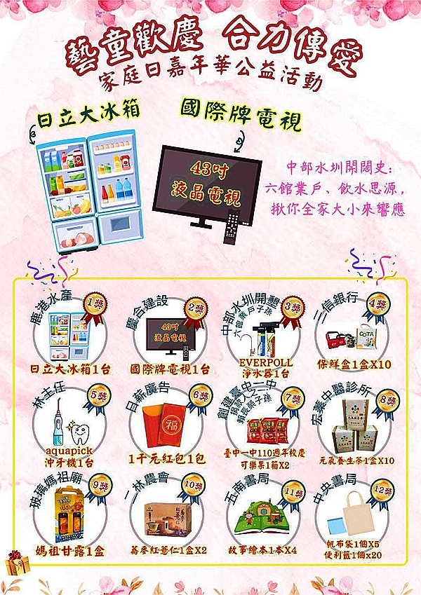 臺中一中第五十二屆校友、企業家台湖食品慷慨贈送30組恐龍布丁,彰化中小企業協會理事長:陳凱榮亦奉獻媽祖平安餅,將幸福與祝福灑落每個家庭。 這是一場愛意綿延的盛會,是心靈最柔軟的港灣。