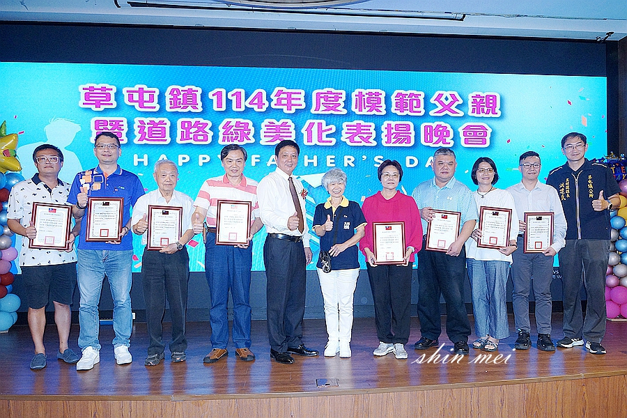 [新媒社 記者張銀澤/南投報導] 八月八日父親節~在這個爸氣十足充滿感恩節日的前夕,草屯鎮長簡賜勝為獻上對模範父親崇高敬意,在特別的日子以隆重餐會方式舉辦「草屯鎮114年模範父親表揚晚會」活動,並由各里遴選薦拔27位模範父親出席接受表揚。