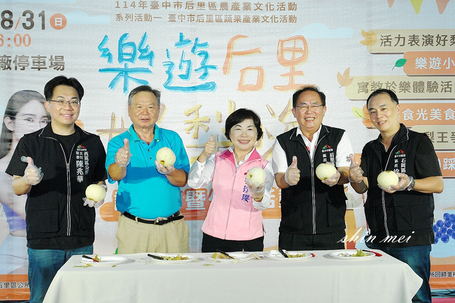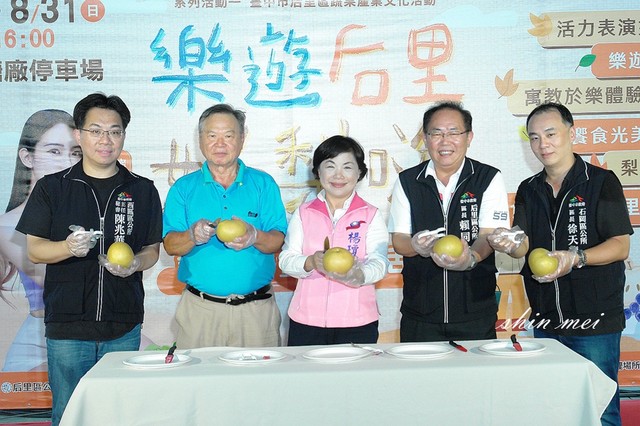 后里區長賴同一表示,后里為台中重要梨產區,今年因氣候條件優異,水梨甜度預估可達12至13度。主要產出品種包括新興梨、豐水梨、秋水梨及寶島甘露梨,不僅營養豐富,更是夏季消暑的首選聖品。