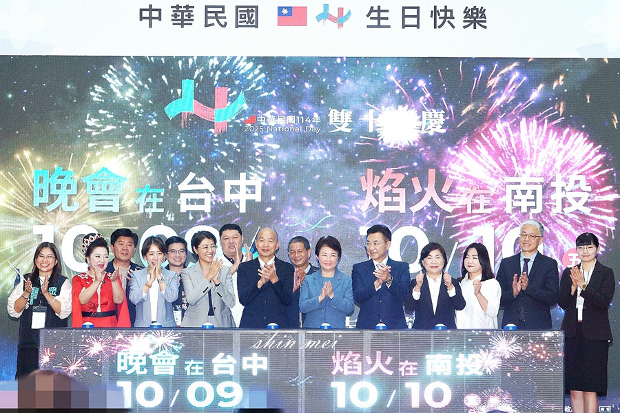 今年國慶慶典,10月9日國慶晚會在台中圓滿戶外劇場,由藝人白冰冰代言;10月10日國慶焰火在南投縣會展中心。為了迎接國家生日,台中、南投串聯推廣中台灣觀光,縣府同步推出「南投旅遊好康月」,結合住宿、餐飲及旅遊景點提供優惠,並攜手各縣市推觀光,包括臺北市、花蓮縣、新竹縣、新竹市、苗栗縣、臺中市、彰化縣、雲林縣、嘉義市,邀請旅客在觀賞國慶焰火的同時,深入體驗南投的人文底蘊與觀光魅力。從茶博會場的濃厚茶香,到會展中心的絢爛夜空,再到縣內各大觀光亮點,南投將以最熱情的款待,迎接來訪遊客,共度難忘國慶假期。