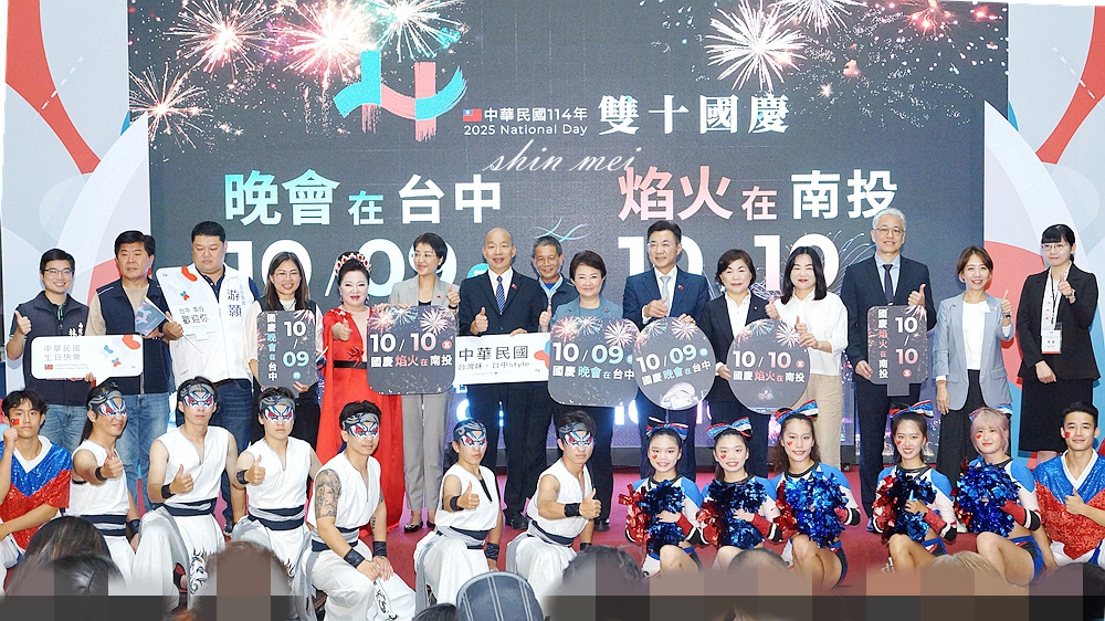 114年國慶晚會在台中、國慶焰火在南投。兼國慶籌備委員會主委的韓院長24日偕同立法院副院長江啟臣、南投縣許縣長、台中市盧市長等人,舉辦跨縣市的聯合記者會,包括立委馬文君、游顥、麥玉珍、楊瓊瓔,僑委會副委員長李妍慧等人參加。